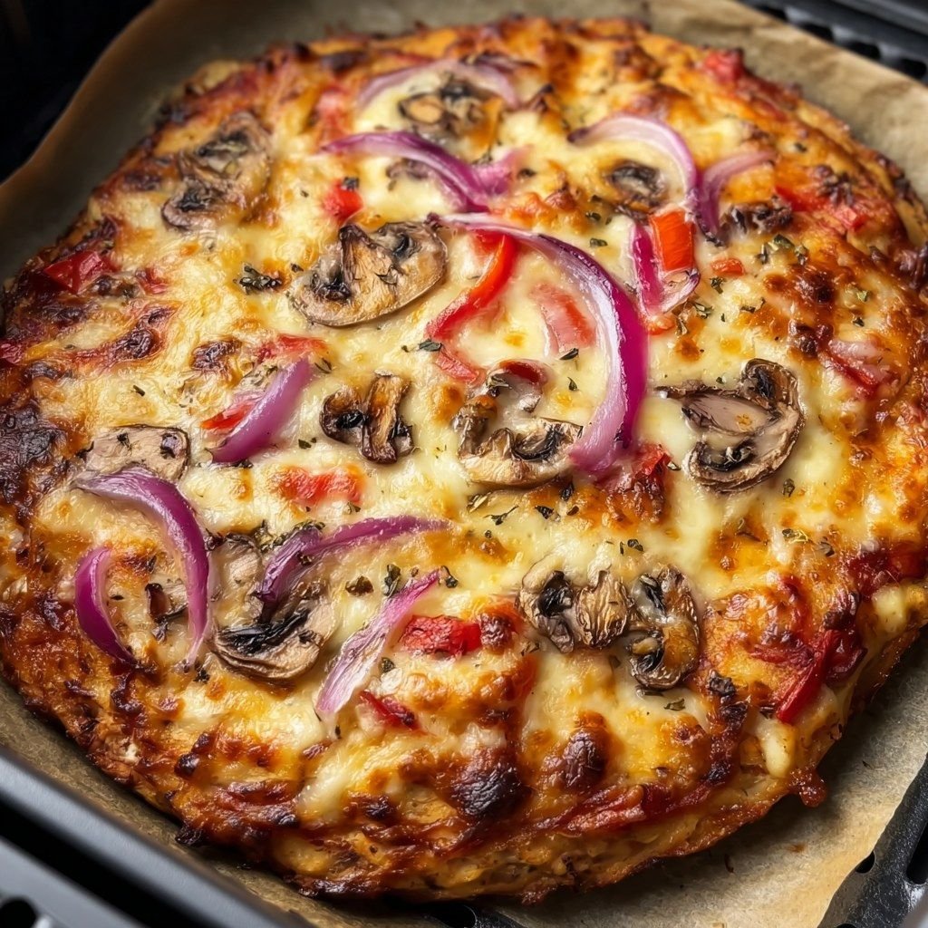 A crispy air-fried crust topped with melty cheese and colorful veggies, ready in minutes. Perfect for a light meal, snack, or even a healthier pizza night.
