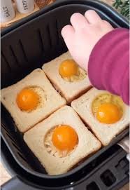 Place the toasts in the air fryer at 170°C (338°F) for about 12 minutes, or until the eggs are cooked and the cheese is nicely melted and golden.
