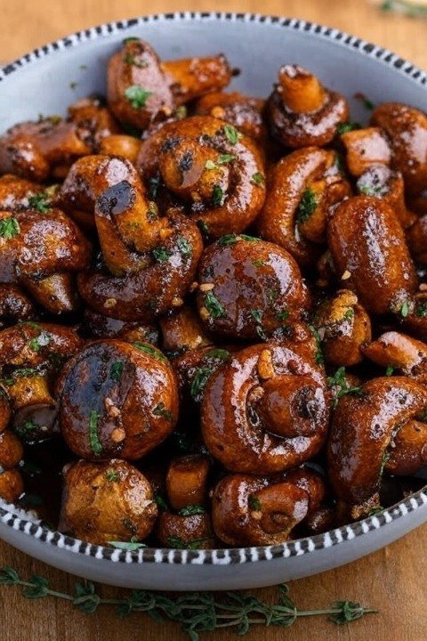 In a larger bowl, toss the mushrooms with the garlic butter mixture until they are well coated. Make sure every mushroom is evenly covered.
