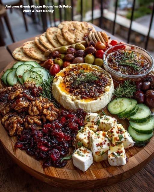 Autumn Greek Mezze Board with Feta, Nuts & Hot Honey
