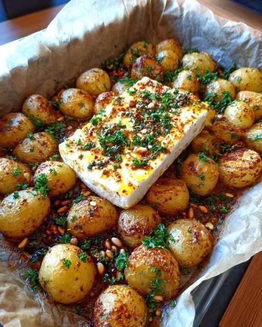 Bake for 35–40 minutes, stirring once halfway through, until the potatoes are golden and crispy on the edges.