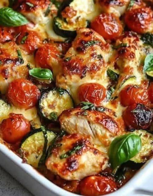 7. Add Cheese: Remove the baking sheet from the oven and sprinkle the shredded mozzarella cheese over the chicken and vegetables. Return to the oven for a minute or two, just until the cheese is melted and bubbly.