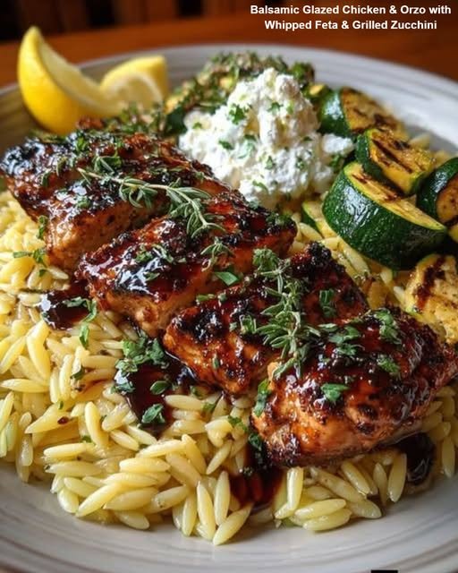Balsamic Glazed Chicken & Orzo with Whipped Feta & Grilled Zucchini is a beautifully balanced dish that combines savory, tangy, creamy, and fresh elements into one satisfying meal. It feels elevated enough for a dinner party yet simple enough for a weeknight if you plan efficiently. The star of the dish is the balsamic glaze—rich, slightly sweet, and deeply flavorful—which coats juicy, golden-seared chicken. Paired with tender orzo pasta, smoky grilled zucchini, and a luxuriously creamy whipped feta, every bite offers contrast and harmony.