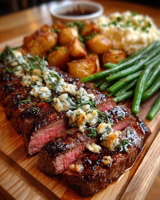 🥩 Balsamic Marinated Flank Steak with Blue Cheese Crust