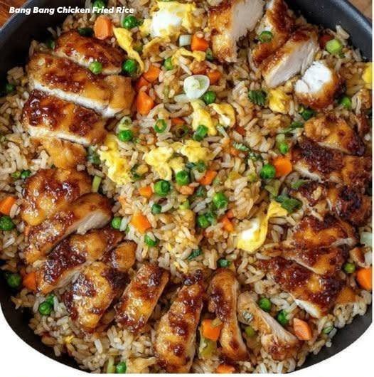 A: Air-fry the chicken at 180°C (360°F) for 12–14 minutes, then mix with fried rice and sauce on the stove.
