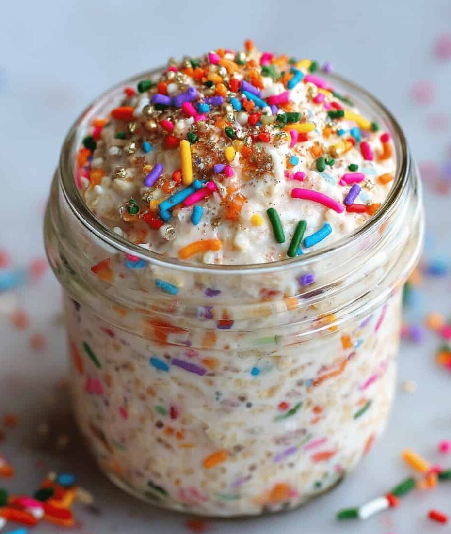 These Birthday Cake Overnight Oats taste like dessert but are packed with fiber and protein. They’re creamy, lightly sweet, and sprinkled with funfetti vibes — perfect for breakfast or a guilt-free treat any day of the week.