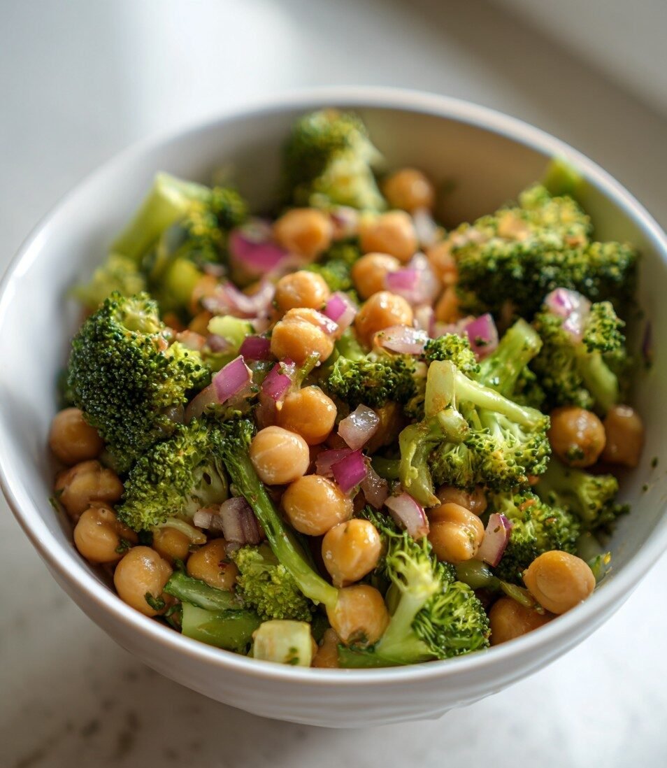 This vibrant, nutritious salad is packed with protein from chickpeas and loaded with vitamins from broccoli. It’s a great option for meal prep, as it can be made ahead and stored in the fridge for a few days.