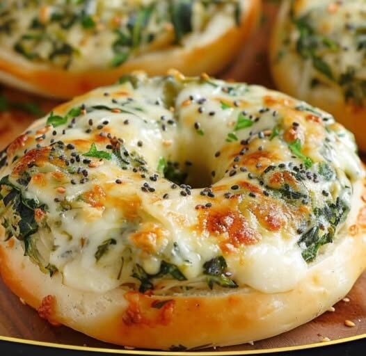 🥯 Cheesy Spinach-Artichoke Bagels Recipe