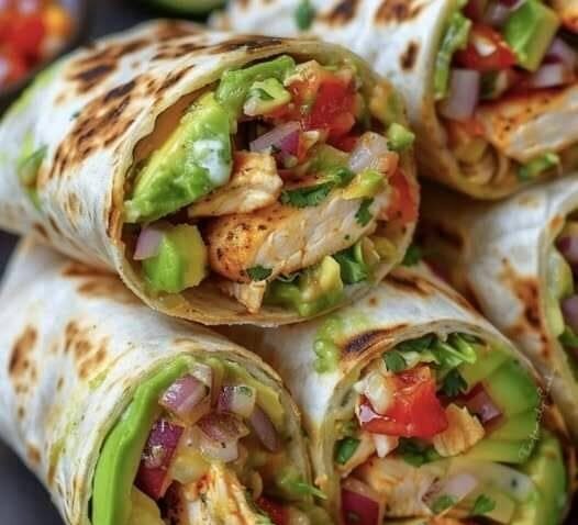 Delicious Chicken Avocado Ranch Burritos with Lime Wedges