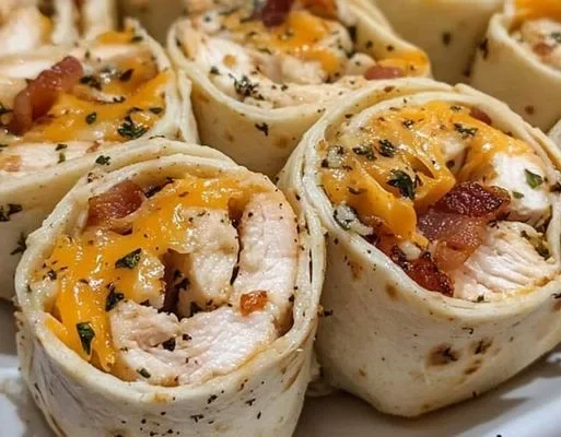 Enjoy these delicious chicken bacon ranch pinwheels as a tasty appetizer or party snack!