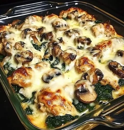 CHICKEN SPINACH AND MUSHROOM LOW CARB OVEN DISH