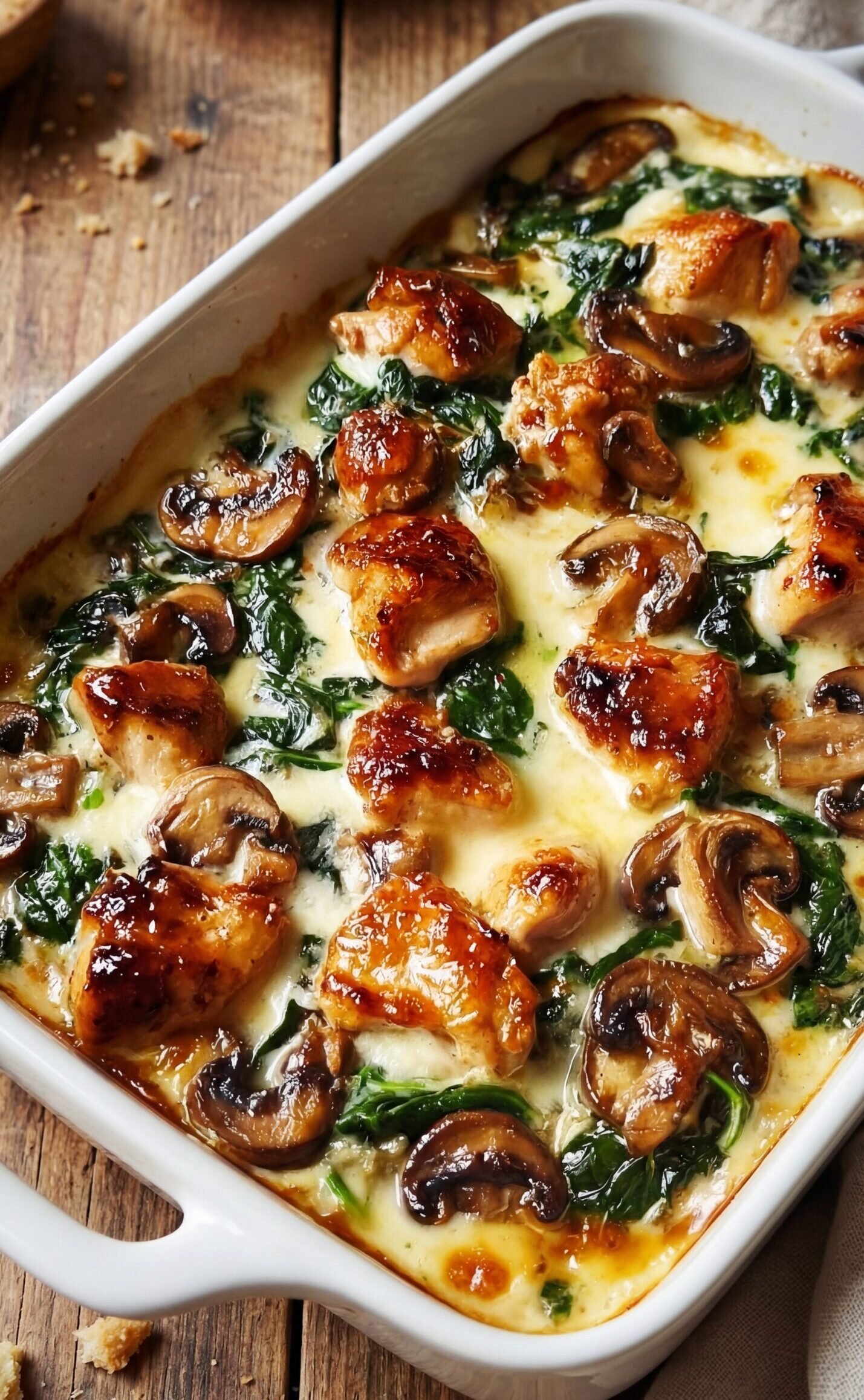 🍗 Chicken, Spinach & Mushroom Low-Carb Oven Bake
