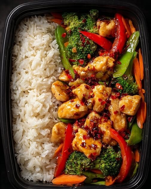 🍛 Chili Garlic Chicken & Vegetable Stir-Fry Bowl with Rice