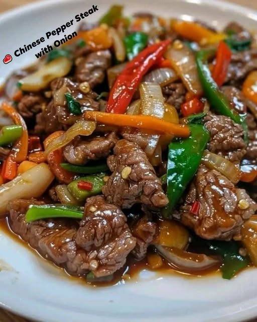 This is Chinese-American takeout–style pepper steak, which is different from traditional Chinese versions but very popular.