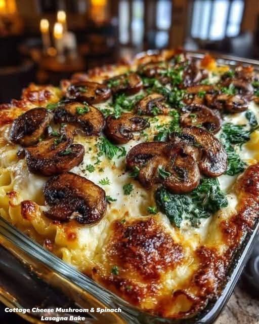 🧀 Cottage Cheese Mushroom & Spinach Lasagna Bake