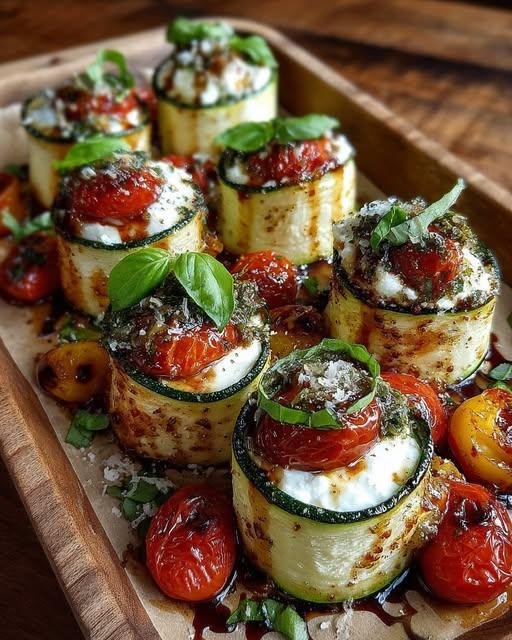 Creamy Burrata Stuffed Zucchini Rolls with Tomato Glaze