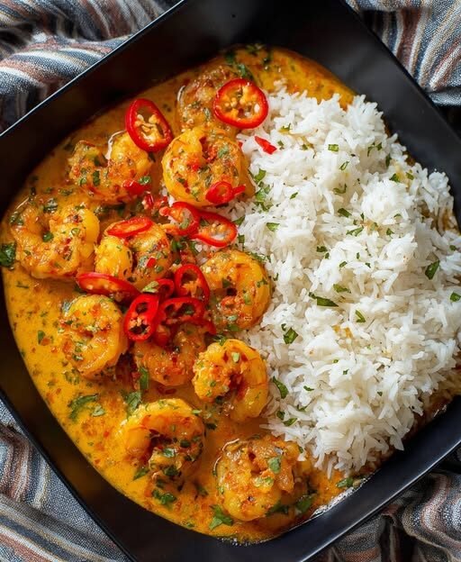 🥥 Creamy Coconut Prawn Curry with Steamed Rice