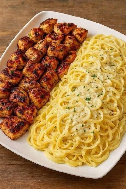 Creamy Garlic Butter Chicken & Linguine in Alfredo Sauce
