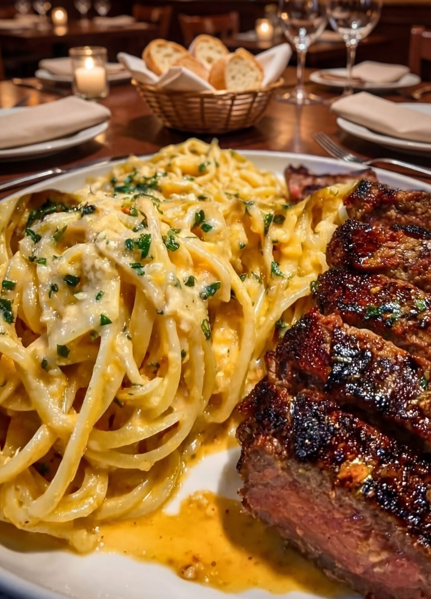 🥩 Creamy Garlic Pasta with Steak