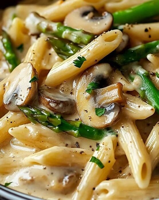 🍝 Creamy Mushroom and Asparagus Chicken Penne