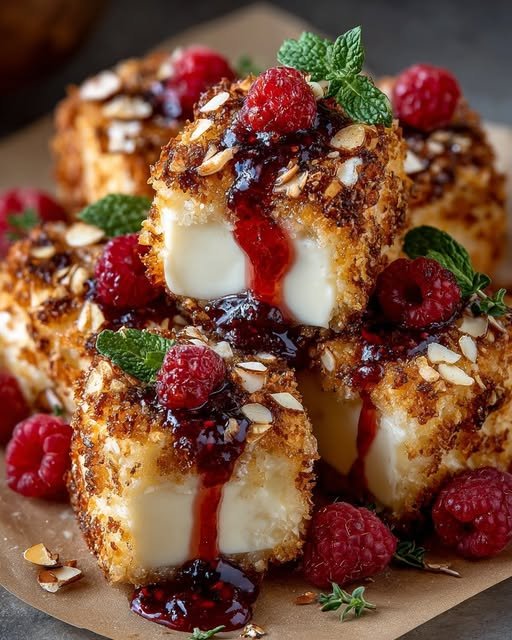 Crispy Fried Cheese Bites with Raspberry Sauce