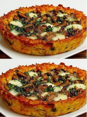 🥔 Crispy Grated Potato Pie with Spinach & Mushrooms