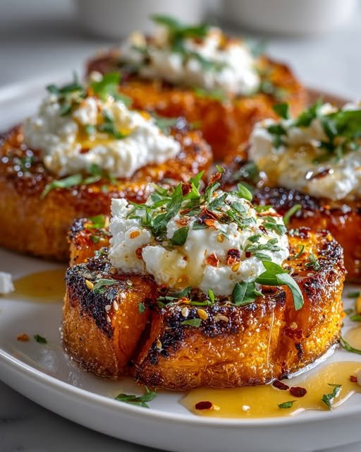 🍠 Crispy Smashed Sweet Potatoes with Whipped Feta & Hot Honey