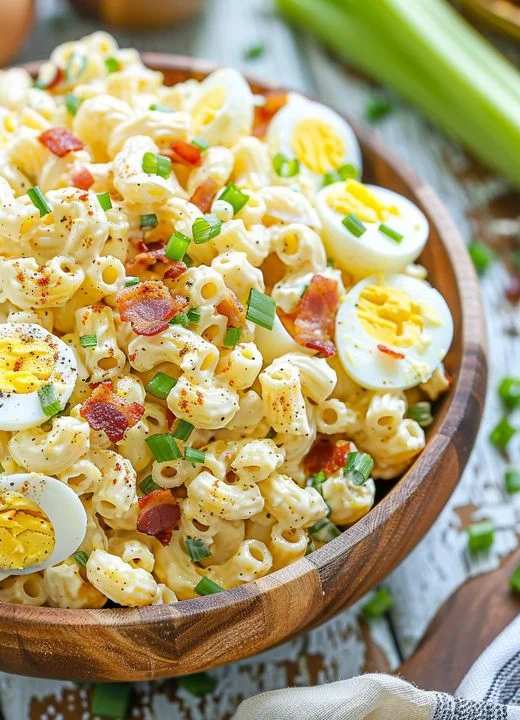 Discover the simplicity and delight of our Deviled Egg Pasta Salad, featuring elbow macaroni, hard-cooked eggs, mayonnaise, Dijon mustard, baby dill pickles, and a host of fresh vegetables, all dressed in a creamy, tangy sauce.