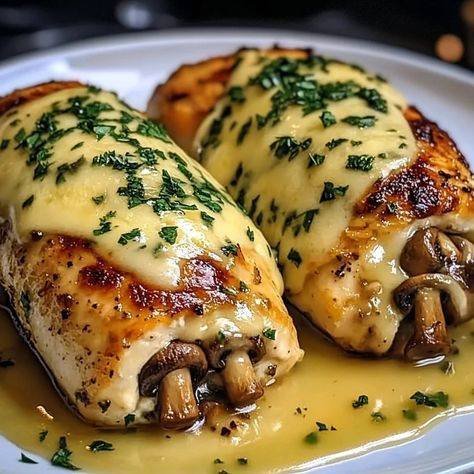 Easy Cheesy Garlic Butter Mushroom Stuffed Chicken