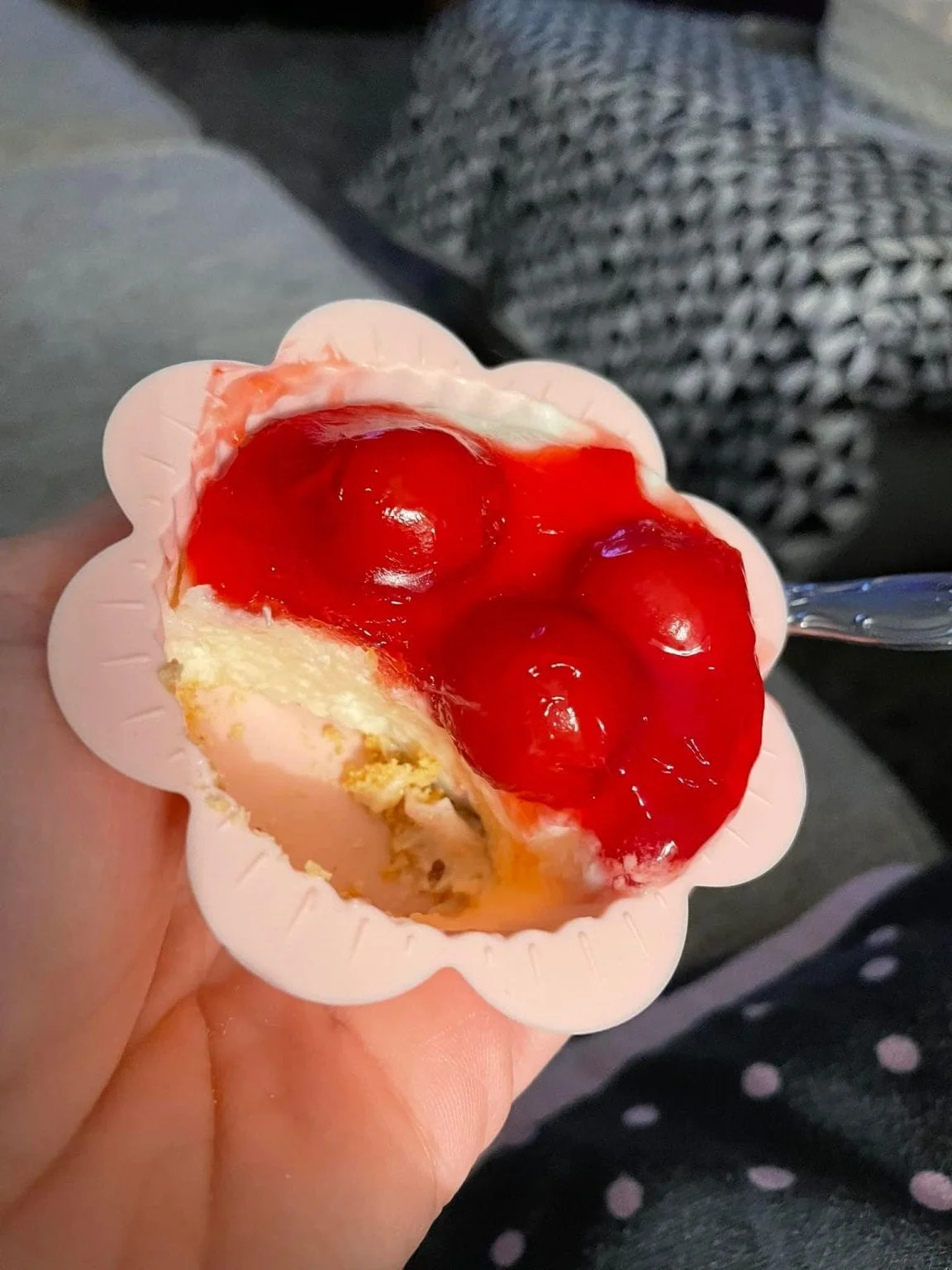 So I decided to take the recipe and tweak it to make them smaller. I bought some silicone cupcake cups and made them in there and then froze them.