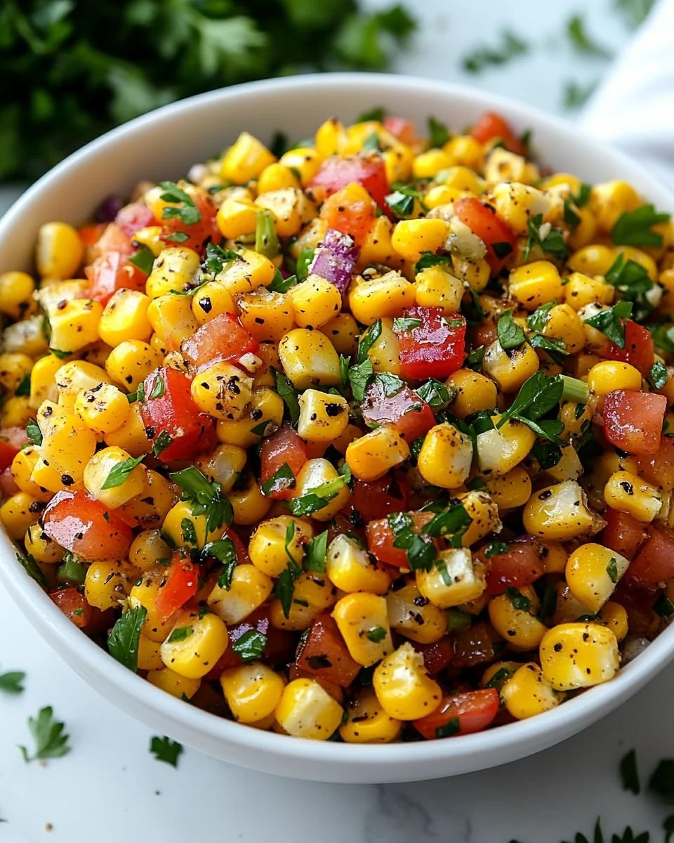 This vibrant corn salad is sweet, zesty, and herb-loaded, with juicy tomatoes, crisp onion, and fresh parsley. It’s light, satisfying, and comes together in minutes—ideal as a side dish or a simple weeknight meal.