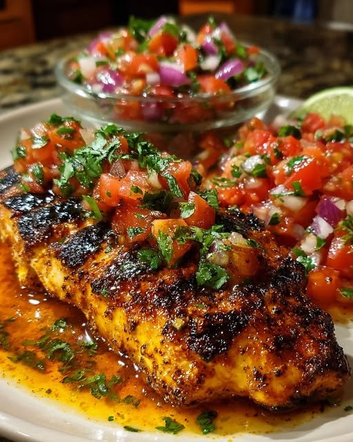 Place chicken on a plate, top with fresh cilantro lime salsa.