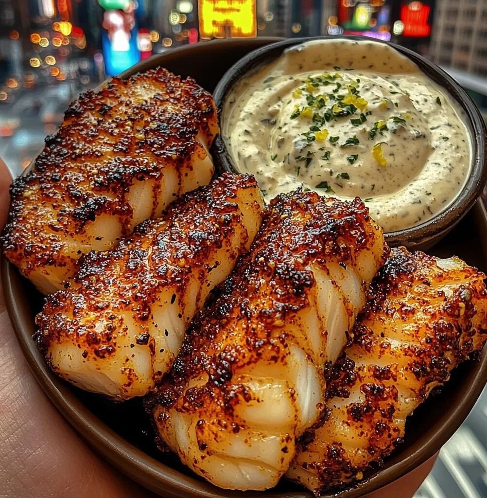 Golden-seared cod bites tossed in garlic butter and spices, served with a cool, creamy lemon herb dip. Perfect as an appetizer, snack, or light main.