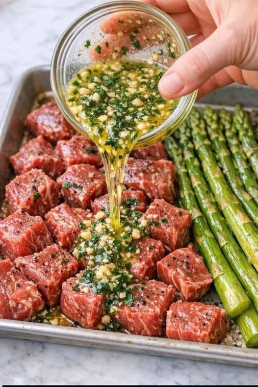 This dish combines juicy, bite-sized steak pieces with tender roasted asparagus, all coated in a rich garlic-herb butter marinade. It’s a quick, high-protein, one-pan meal that delivers bold flavor with minimal cleanup—perfect for weeknights or a simple dinner upgrade.