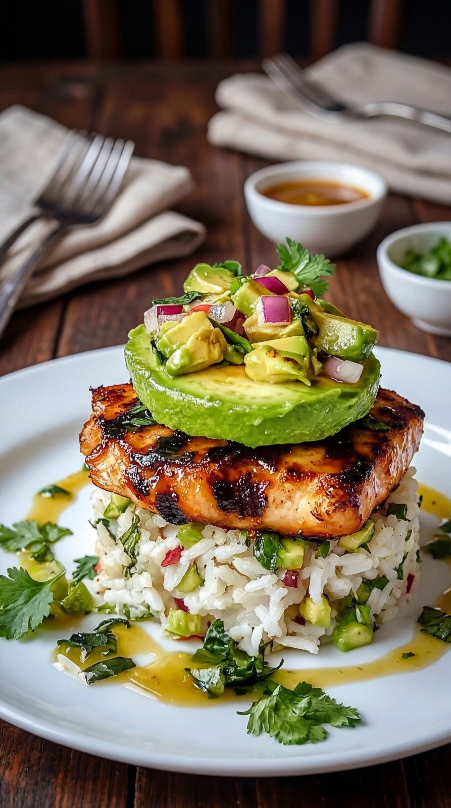Grilled Salmon with Avocado Salsa and Cilantro Rice