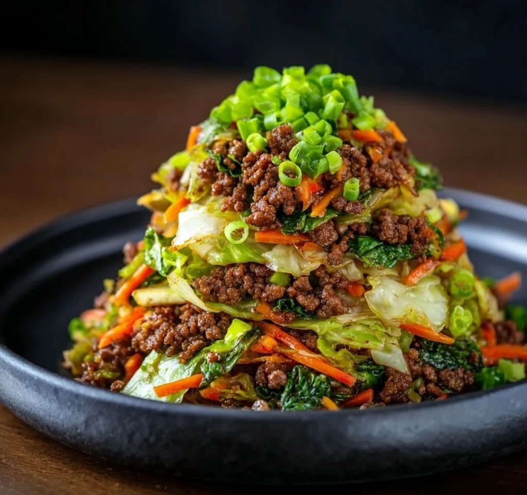 🥢 Healthy Chinese Ground Beef & Cabbage Stir Fry Stack