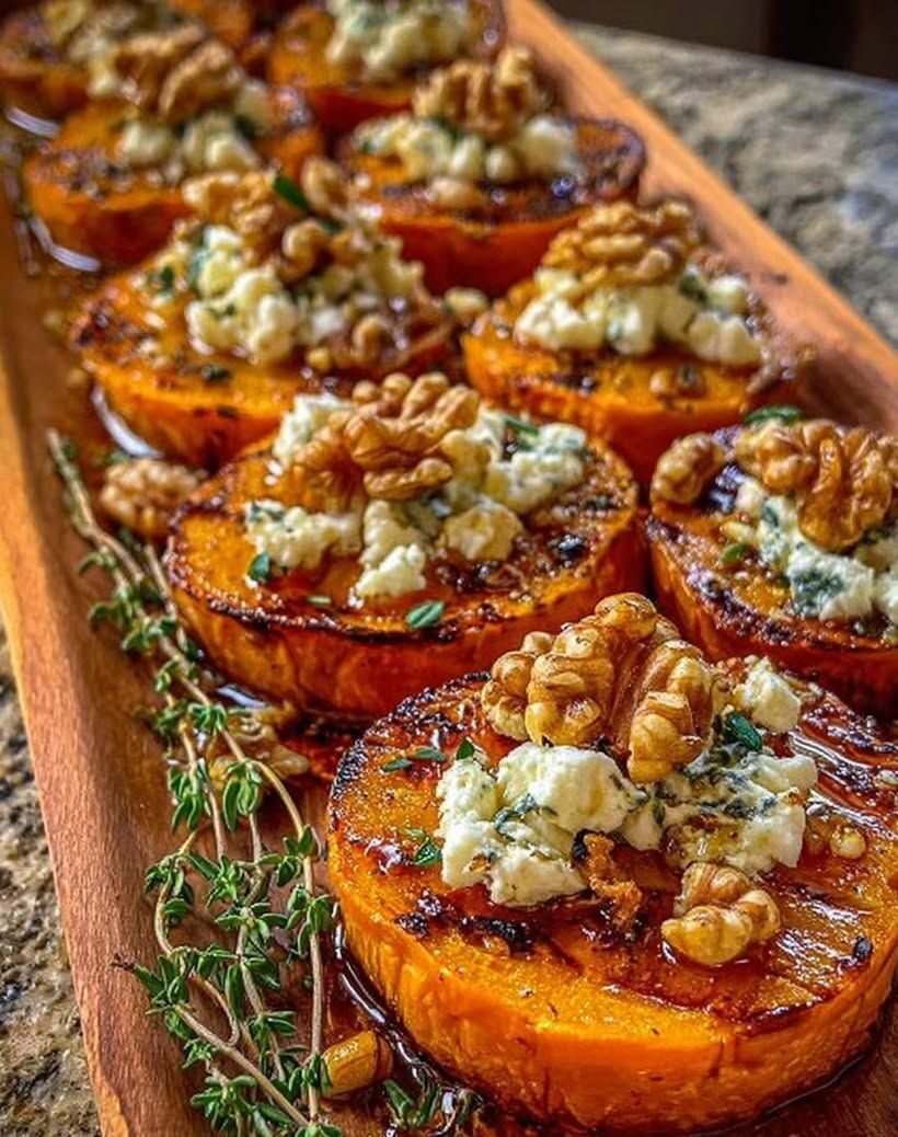 Honey Glazed Sweet Potatoes with Goat Cheese and Walnuts