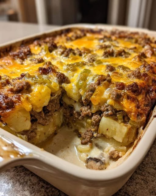 In a skillet over medium heat, brown the ground beef with diced onions. Season with salt, pepper, and optional spices like garlic powder or paprika. Cook until no pink remains. Drain excess grease.
