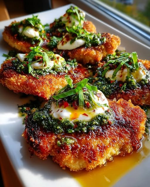 🍗 Italian Basil Chicken Cutlets with Pesto & Burrata