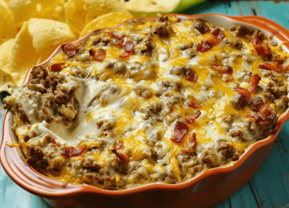 16. Your Keto Bacon Cheeseburger Dip is ready to pair perfectly with lots of keto dippers.