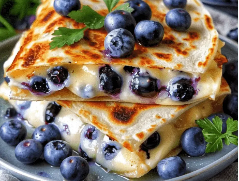 - We can’t store this dish. The quesadilla will get soggy; the cream cheese and blueberries will release moisture.