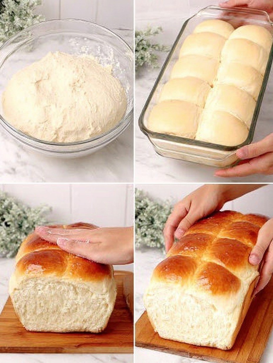 Divide dough into 6–8 balls. Place them snugly into the loaf pan.