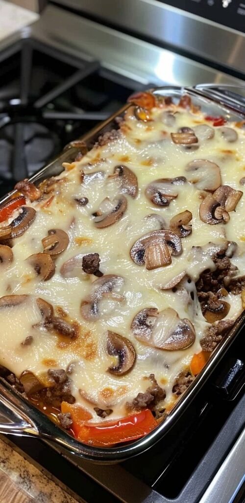 Bake uncovered for 20–25 minutes, until the top is bubbly and slightly golden.