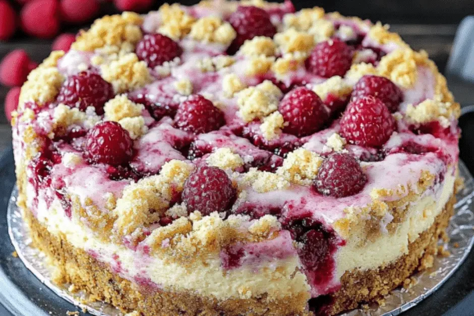 This keto raspberry Cream Cheese Coffee Cake is the ideal low-carb treat for breakfast, brunch, or dessert. It provides a lovely combination of flavors and textures without the added sugar or carbohydrates, with layers of soft almond flour cake, rich and creamy cheesecake center, and juicy bursts of fresh raspberries. Each bite becomes even more enticing with the addition of a buttery optional crumb topping, which gives a delicious crunch. This coffee cake is naturally gluten-free and keto-friendly, and this cake is perfect for anyone on a low-carb diet. This keto raspberry Cream Cheese Coffee Cake is served with coffee in the morning or as a post-dinner treat.
