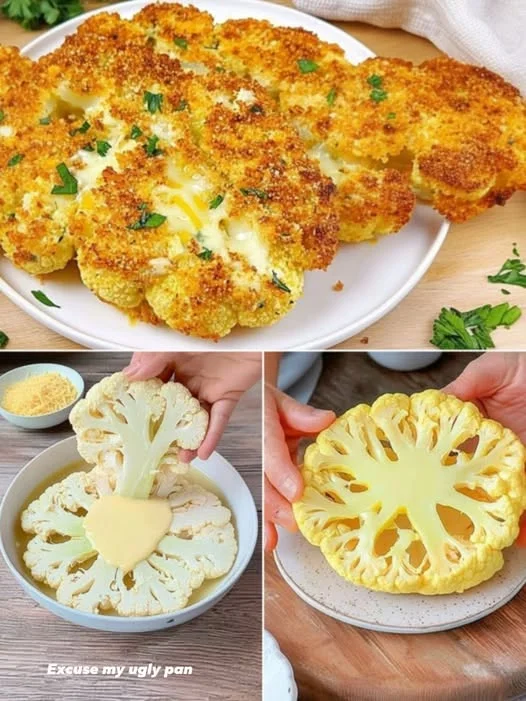 Plate the cauliflower steaks and garnish with additional parsley if desired. Serve immediately while hot and enjoy your delicious, low-carb alternative to baked potatoes!