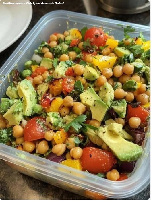 A fresh, protein-packed Mediterranean salad with creamy avocado, hearty chickpeas, and a bright lemon–olive oil dressing. Perfect as a light meal, side dish, or meal prep option.