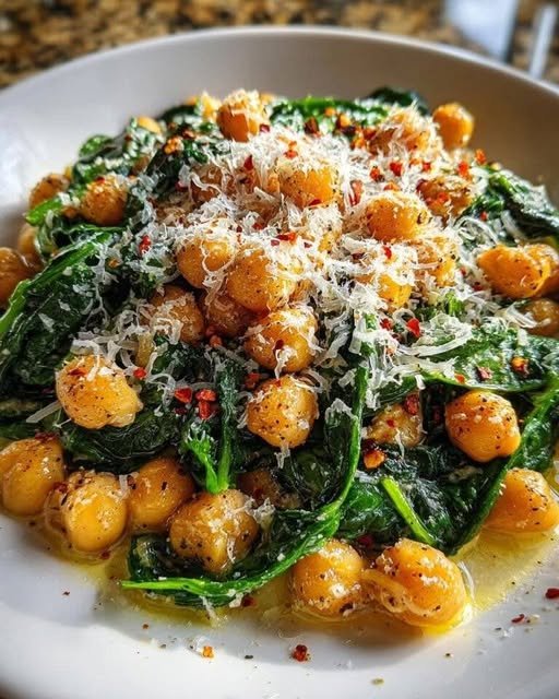 🥗 Mediterranean Parmesan Spinach Chickpeas