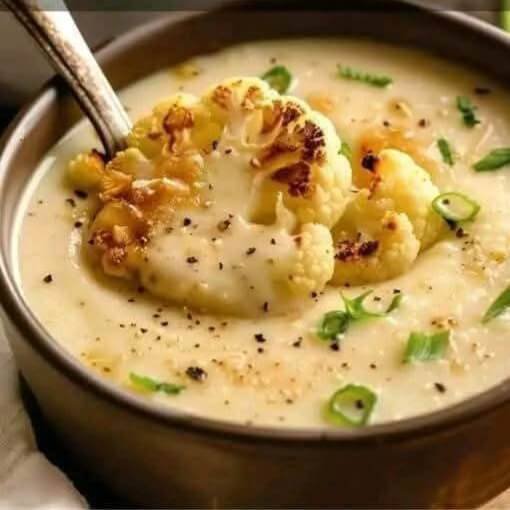 🧄 Mediterranean Roasted Garlic Cheddar Cauliflower Soup
