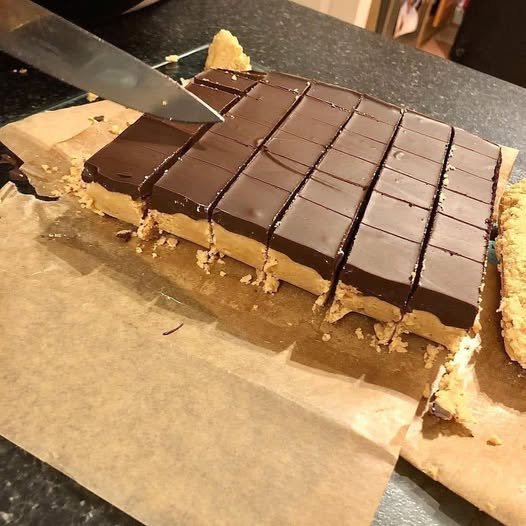 Remove the pan from the refrigerator and pour the melted chocolate-peanut butter mixture over the peanut butter base. Use a spatula to spread it evenly, ensuring every corner is covered. The glossy chocolate topping is a delightful contrast to the nutty base.