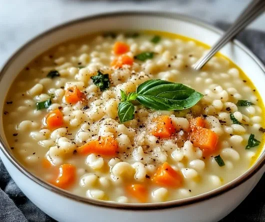 Serve hot and enjoy this comforting bowl of pastina soup.